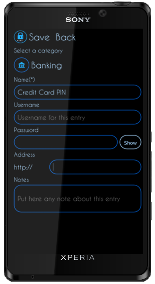 Available in 10 languages, easy, immediate use, no learning curve. Insert edit for each card: category, name, user name, password, website, notes. Ultra fast search function with category and real time updating text filter on name, user name, notes. Password manager with copy to clipboard function.